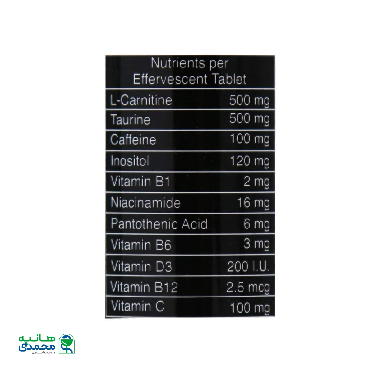 جدول ترکیبات در هر قرص جوشان