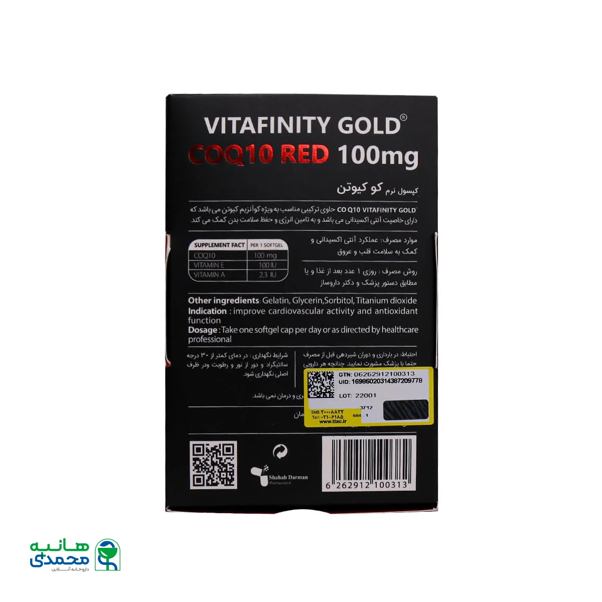 کپسول نرم کوکیوتن قرمز ویتافینیتی گلد شهاب درمان 45 عددShahab Darman COQ10 Red 45 Softgel