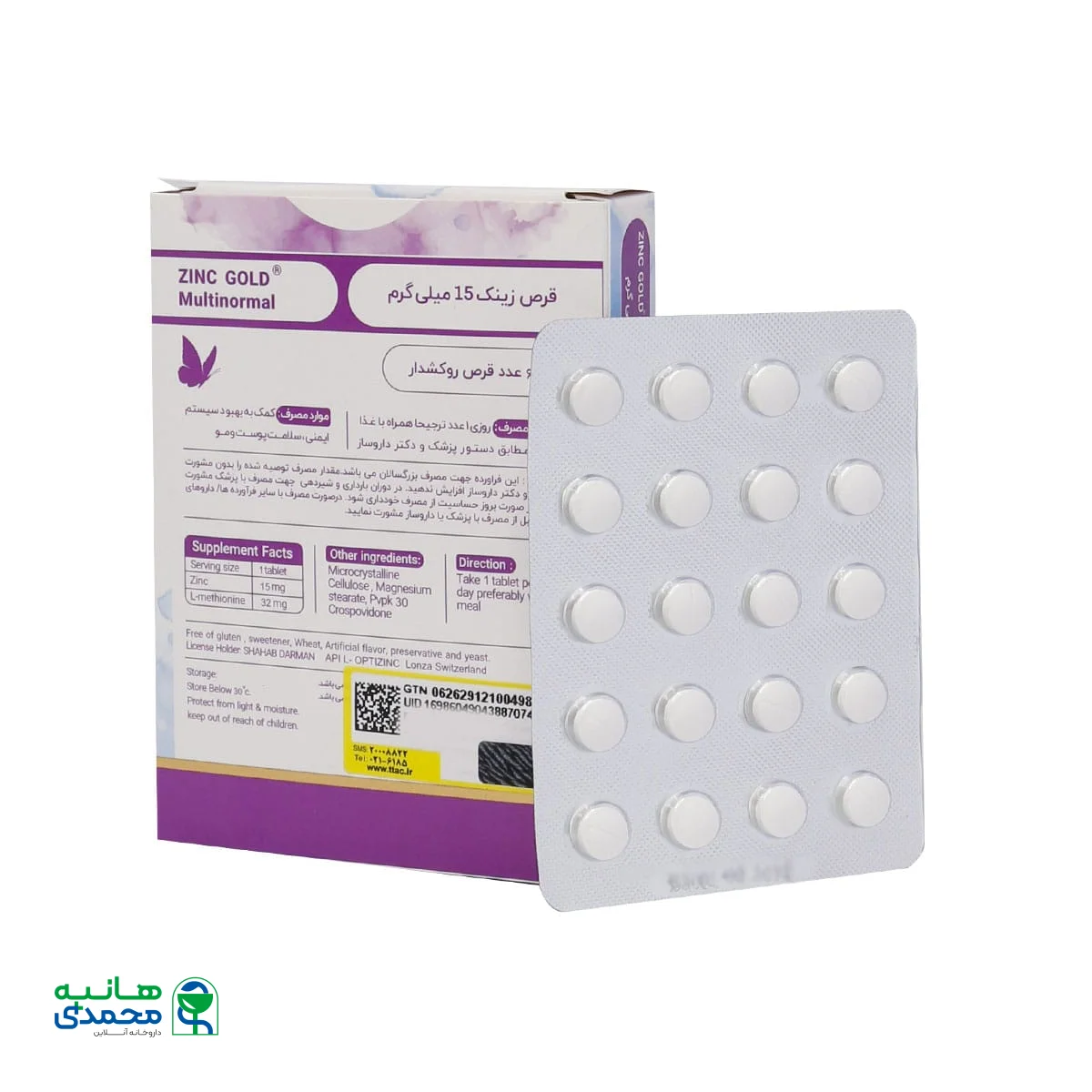 قرص زینک گلد 15 میلی گرم شهاب درمان 60 عددShahab Darman Zinc Gold 15 mg 60 Tabs