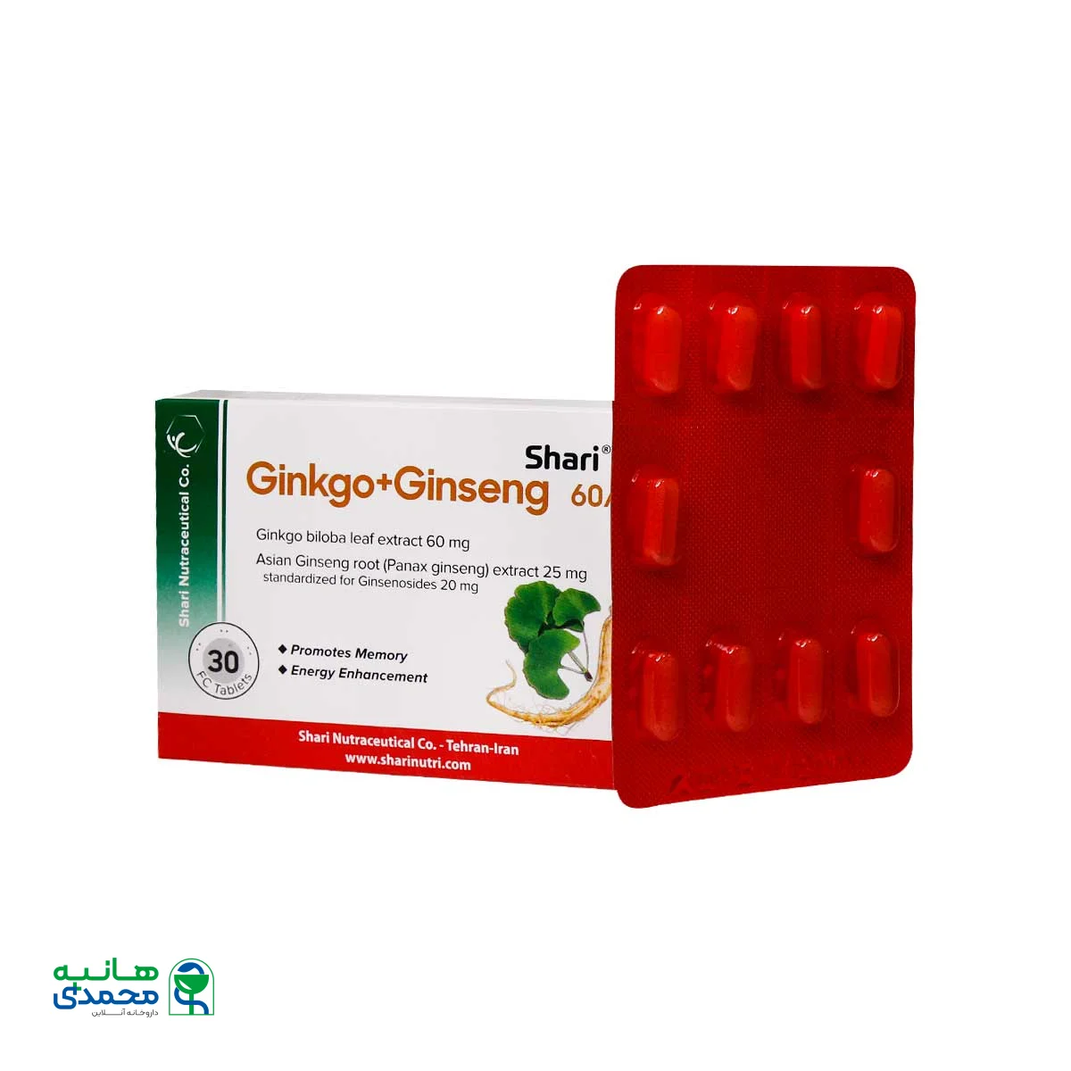 قرص جینکو + جینسنگ شاری 30 عددShari Ginkgo + Ginseng 30 Tabs