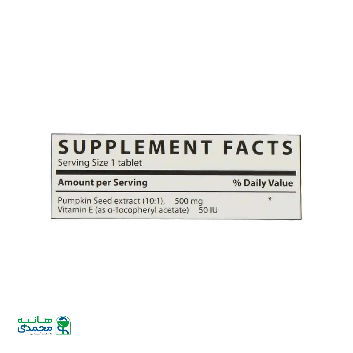 جدول ترکیبات قرص پامپکین سید + ویتامین ای شاری