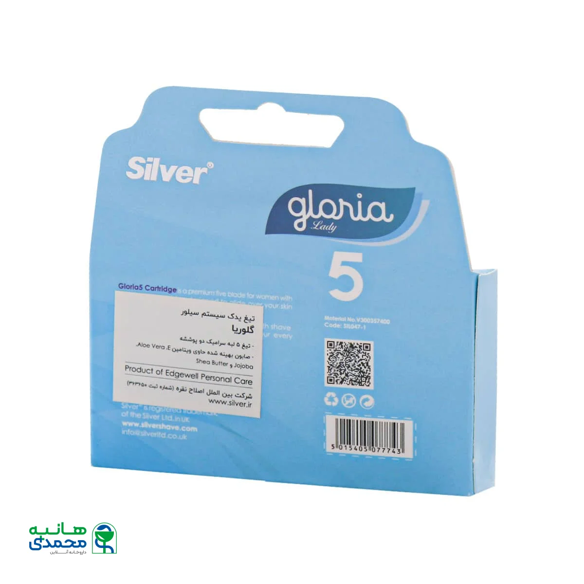 تیغ یدک سیستم 5 لبه مدل گلوریا لیدی سیلور یک محصول از برند سیلور بوده که برای مصرف روزانه بانوان مناسب است. این تیغ یدک دارای 5 لبه تیز و باکیفیت است که در اصلاح دقیق‌تر موها و صافی پوست تاثیرگذار است. این تیغه‌ها از نوع سرامیکی و دو پوششه بوده که باعث کند نشدن و افزایش طول عمر آنها می‌شود. استفاده از این محصول برند سیلور بسیار آسان و کم خطر است.