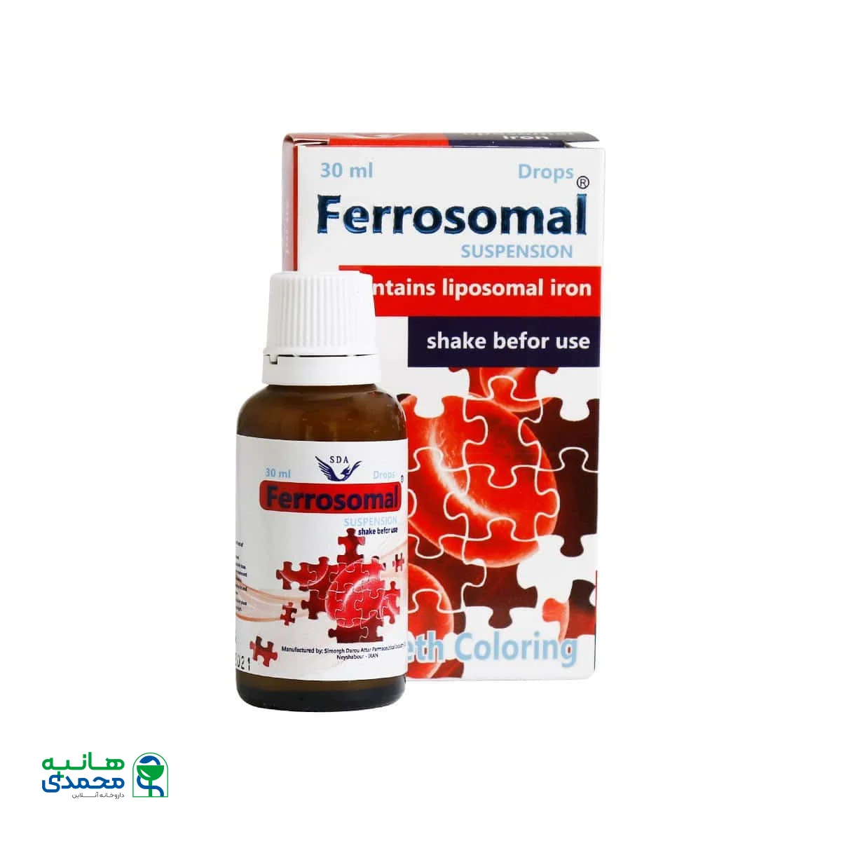 نوزادانی که کمبود آهن دارند رشد کمی دارند و یا وزن آنها اضافه نمی‌شود. رنگ پوست آنها زرد بوده و رنگ پریده‌تر از کودکان دیگر است. نوزاد بی‌اشتها است و از خوردن یا آشامیدن امتناع می‌کند و جنب و جوش کمتری دارد. در صورت کمبود آهن کودک بی‌قرار است، بدون دلیل مشخص گریه و بی تابی می‌کند. در کودکانی که سن بیشتری دارند کمبود آهن با احساس خستگی، اختلال در تمرکز و ضعف عمومی مشخص می‌شود. تاکنون عارضه جانبی خاصی به دنبال مصرف این فرآورده مشاهده نشده است. به دلیلی استفاده از آهن سوکروزمیال (لیپوزومال) در این فرآورده و عدم تماس آهن با مخاط دستگاه گوارش باعث کاهش عوارض جانبی مانند درد معده و تهوع می‌شود. این دارو شامل قطره ۳۰ میلی‌لیتر در جعبه مقوایی همراه با قطره چکان و برگ راهنمای مصرف کننده است.