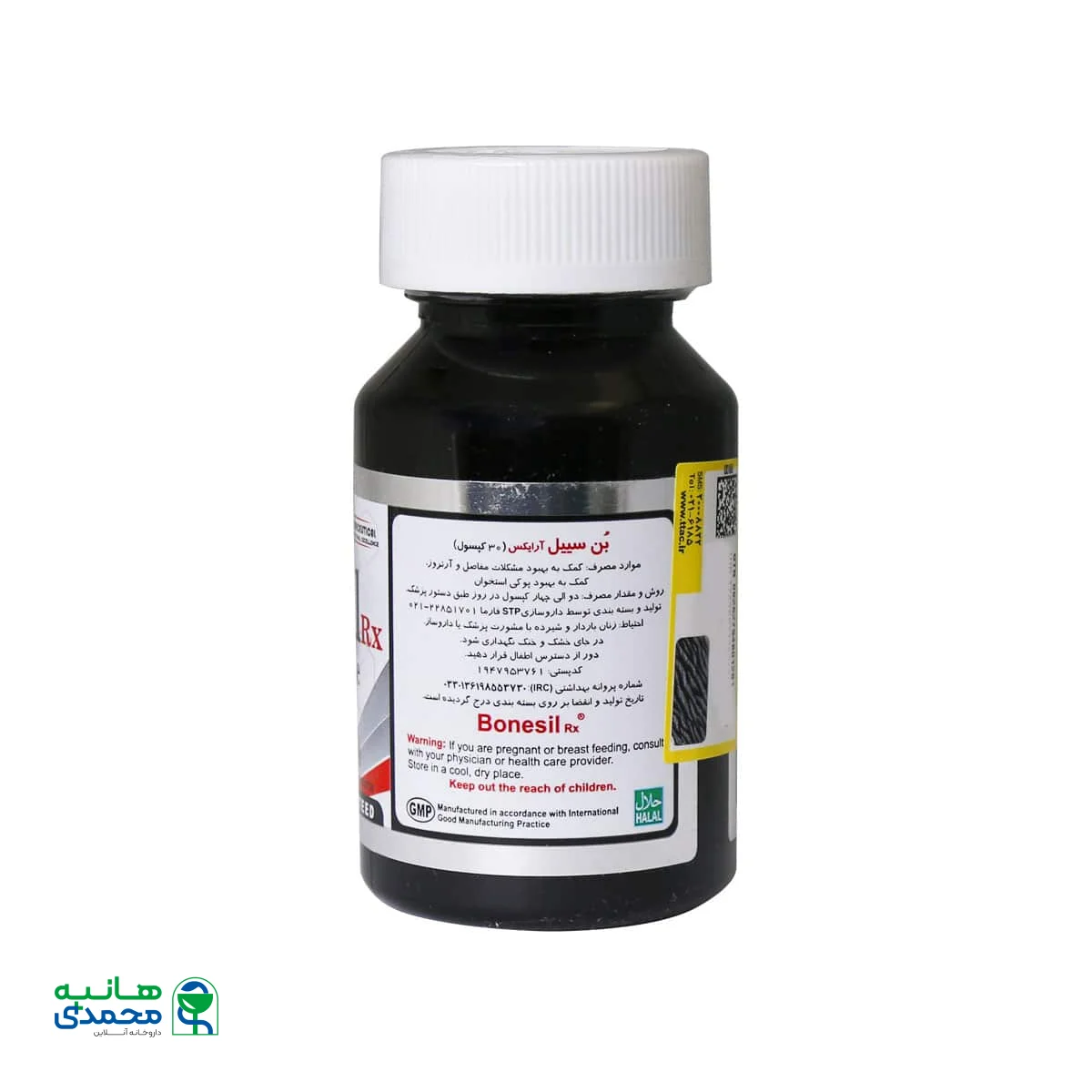 کپسول بن سییل آر ایکس اس تی پی فارما یکی از مکملهای تخصصی برای رفع مشکلات مربوط به استخوان است. این محصول حاوی کلسیم سیترات و سیلیکا بوده که به بهبود مشکلات مفاصل و آرتروز کمک کرده و به عنوان داروی کمکی جهت درمان پوکی استخوان استفاده میشود. کلسیم سیترات موجب تشکیل و حفظ بافت طبیعی استخوانها شده و همچنین موجب پیشگیری از بروز و یا درمان کم خونی در افرادی میشود که به میزان کافی کلسیم را از طریق رژیم غذایی خود دریافت نمینمایند. سیلیکا نیز از طریق تولید کلاژن موجب افزایش انعطاف پذیری و ترمیم بافت پوست و مو و ناخنها نیز میشود.