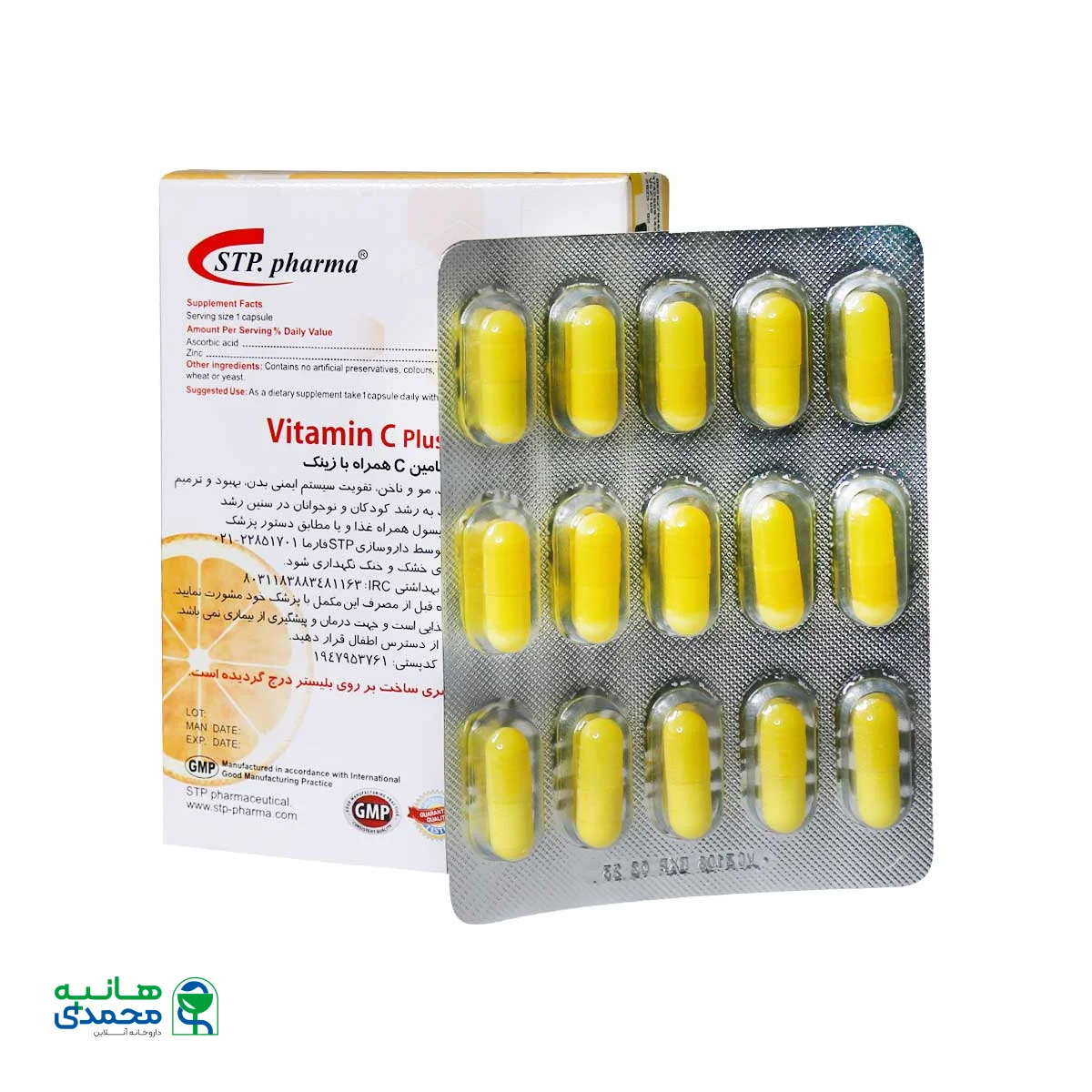 کپسول ویتامین C و همراه با زینک اس تی پی فارما مکملی است که جهت حفظ سلامت پوست، مو و ناخن، تقویت سیستم ایمنی، بهبود و ترمیم سریع زخم‌ها مصرف می‌شود.