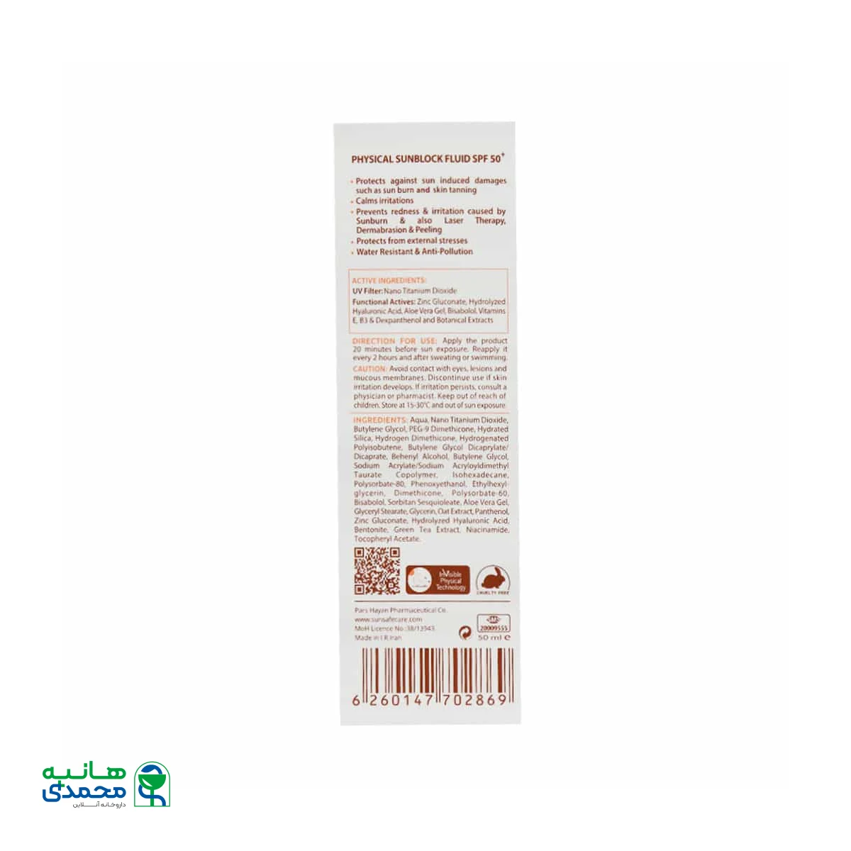 ویژگی های فلوئید ضد آفتاب SPF50+ فیزیکال سان سیف