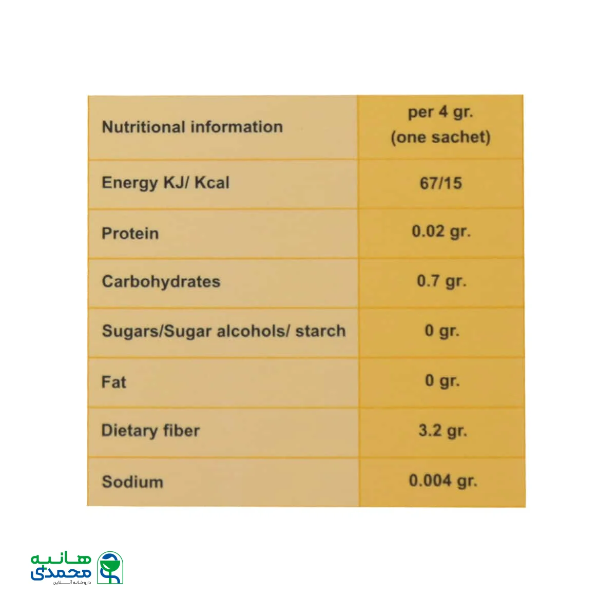 جدول ترکیبات در هر 4 گرم ساشه آی بی اس سانویک