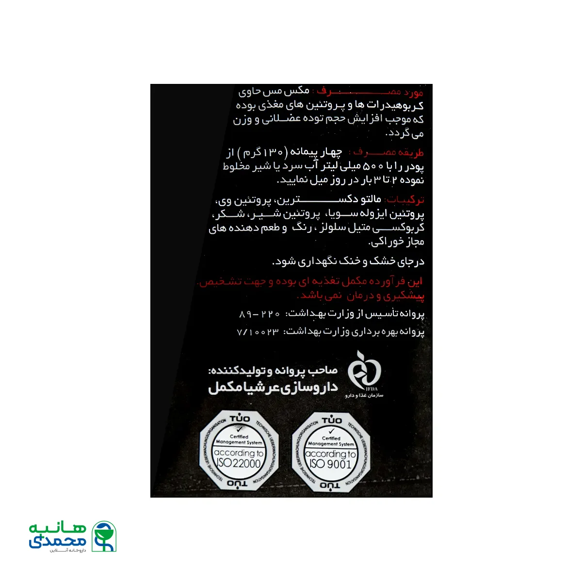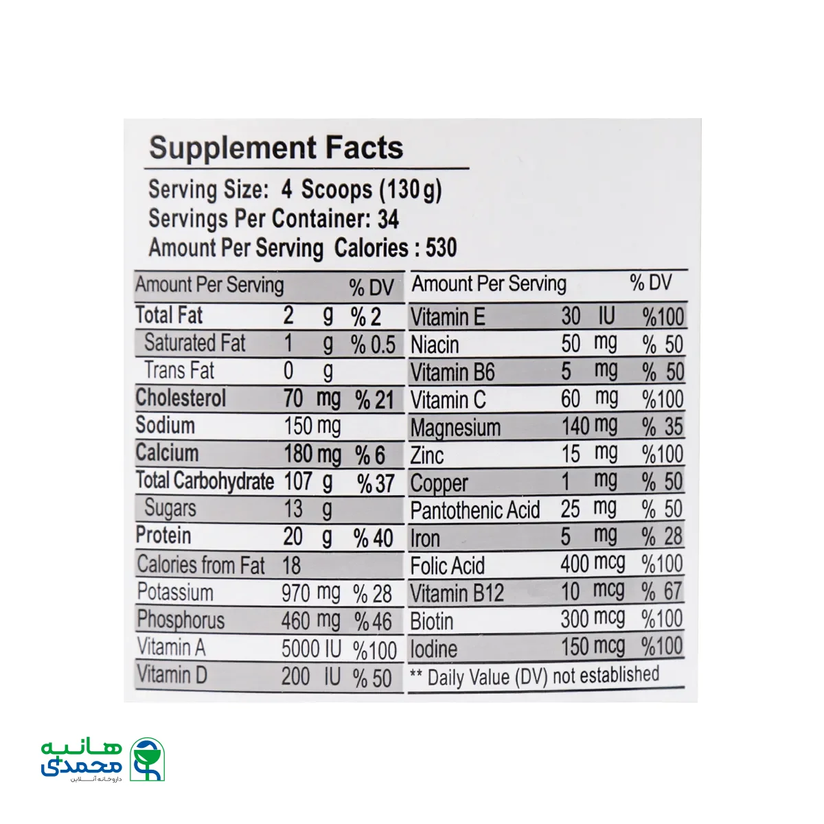 جدول ترکیبات پودر مکس مس ساپلند نوتریشن 4540 گرم