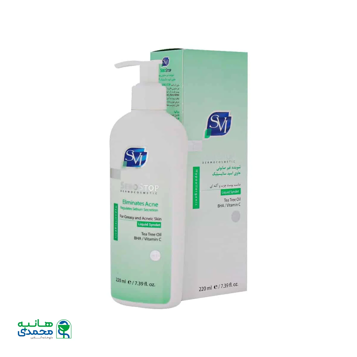 پن مایع غیرصابونی سبو استاپ اس وی آی 220 میلی لیترSVI SeboStop Liquid Cleaning for Greasy and Acneic Skin 220 ml