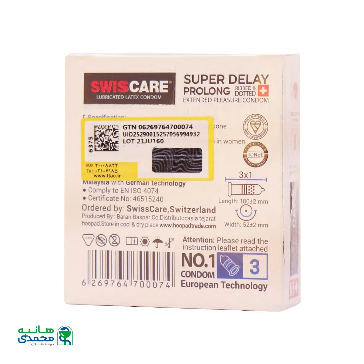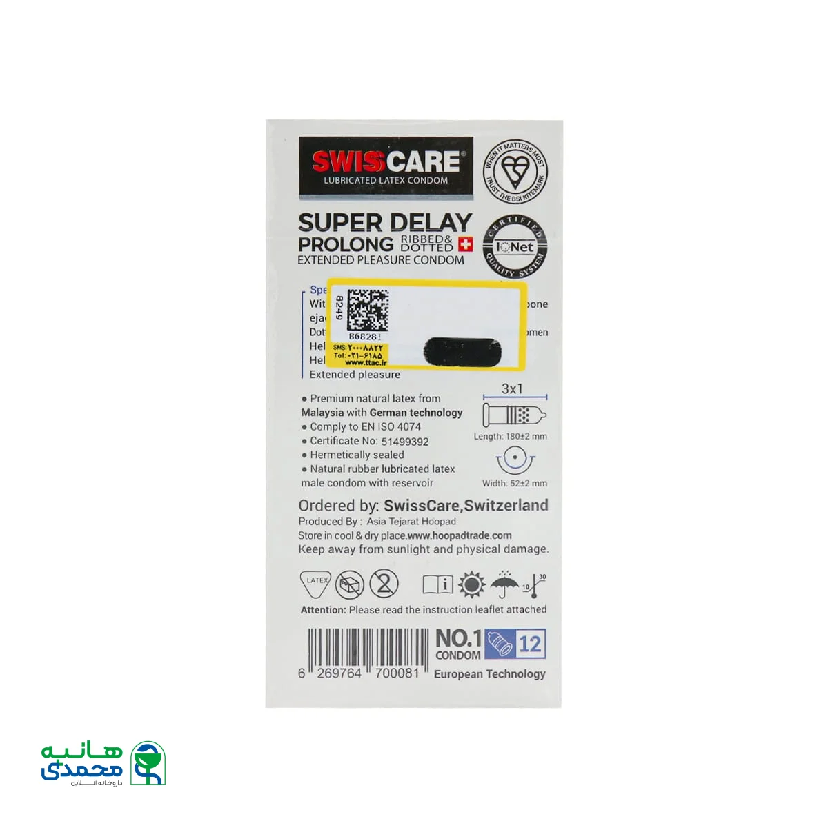 مشخصات کلیSwiss Care Super Delay Prolong Condoms