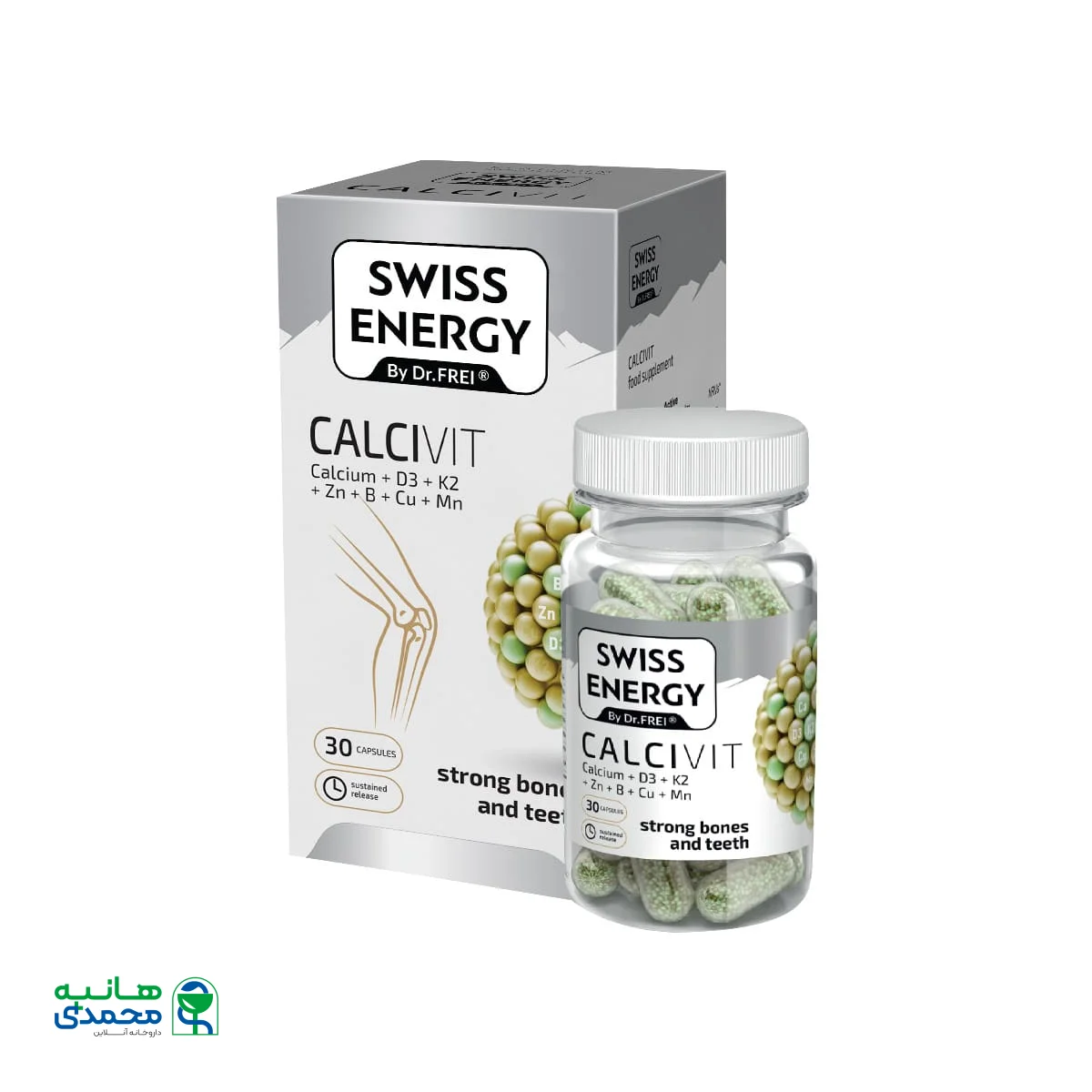 کپسول کلسی ویت سوییس انرژی یک مکمل غذایی با فرمولاسیون خاص و تحت لیسانس سوئیس است که به صورت کپسولهای آهسته رهش عرضه میشود. این مکمل به شما کمک میکند تا نیاز بدن به کلسیم و حتی ویتامین D تامین شود. از آن سو به علت خاصیت آهسته رهش بودن کپسولها، مواد مغذی به تدریج وارد سیستم بدن میشوند که این امر به جذب بهتر و طولانی مدتتر و پیشگیری از عوارض جانبی گوارشی کمک میکند. شرکت معتبر ایرانی تامین فارمد کپسول کلسی ویت سوئیس انرژی را با هدف حفظ و بهبود سلامت استخوان و پیشگیری از پوکی استخوان تولید کرده و با توجه به کیفیت بالا، توسط یک شرکت سوئیسی تاییدیههای لازم را دریافت نموده است. در نظر داشته باشید چنانچه مطابق با تجویز پزشک، جهت حفظ سلامت استخوان، نیاز به ویتامین د بیشتر داشتید، میتوانید علاوه بر این مکمل به صورت مجزا اقدام به خرید قرص ویتامین D و استفاده از آن نمایید.
