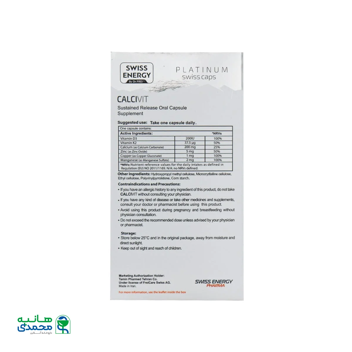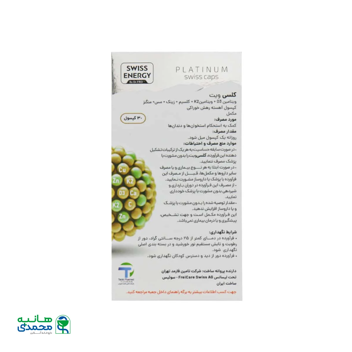 کپسول کلسی ویت سوئیس انرژی در دمای کمتر از 25 درجه سانتی گراد، دور از رطوبت و تابش مستقیم نور خورشید و در بسته بندی اصلی نگهداری شود.