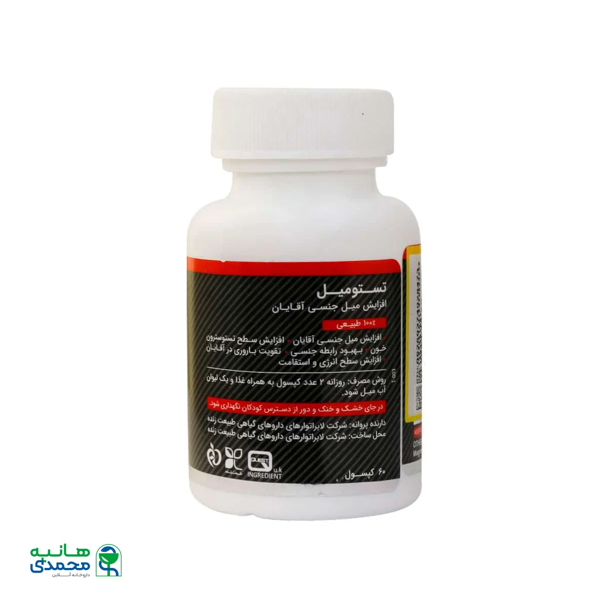 مشخصات کلیTabiat Zendeh Testomail 60 Caps