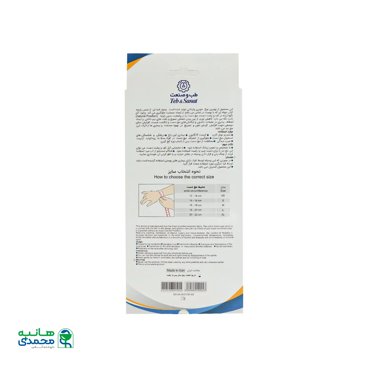 با جابجایی آتل کف و پشت دست، میتوان مچ بند آتل دار نئوپرن طب و صنعت کد 31190 را برای دست چپ یا راست استفاده نمود.