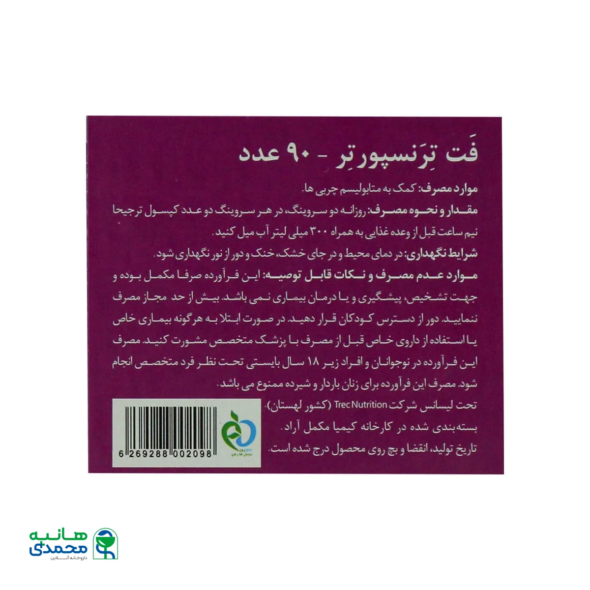 جدول ترکیبات کپسول فت ترنسپورتر ترک نوتریشن