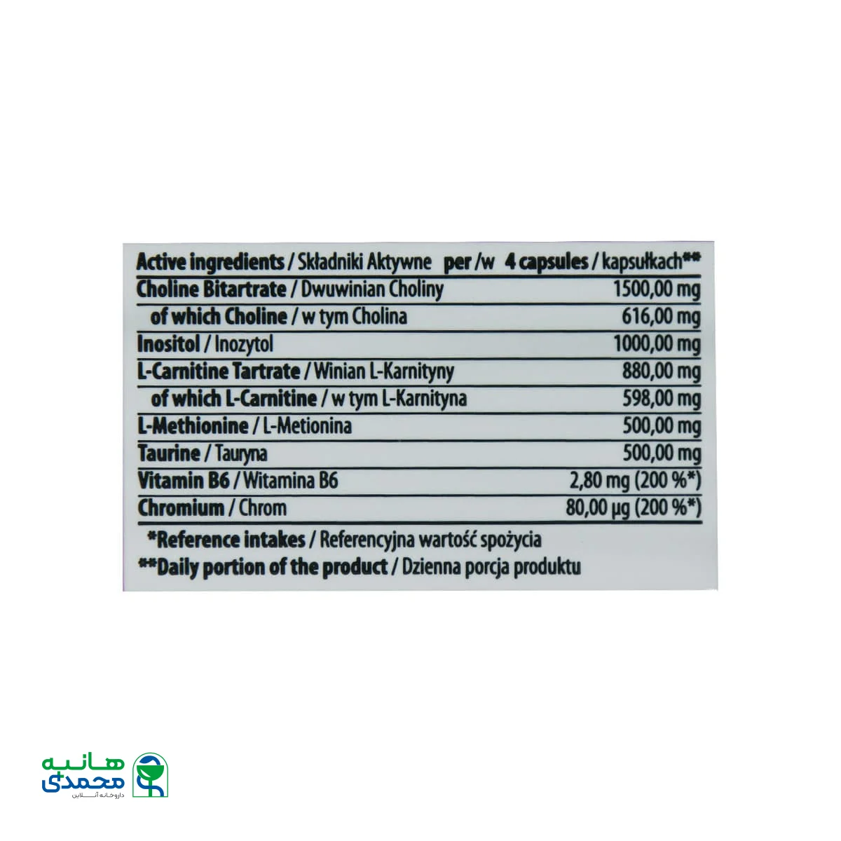 | کولین بی تارتارات | 1500.00mg | ** |