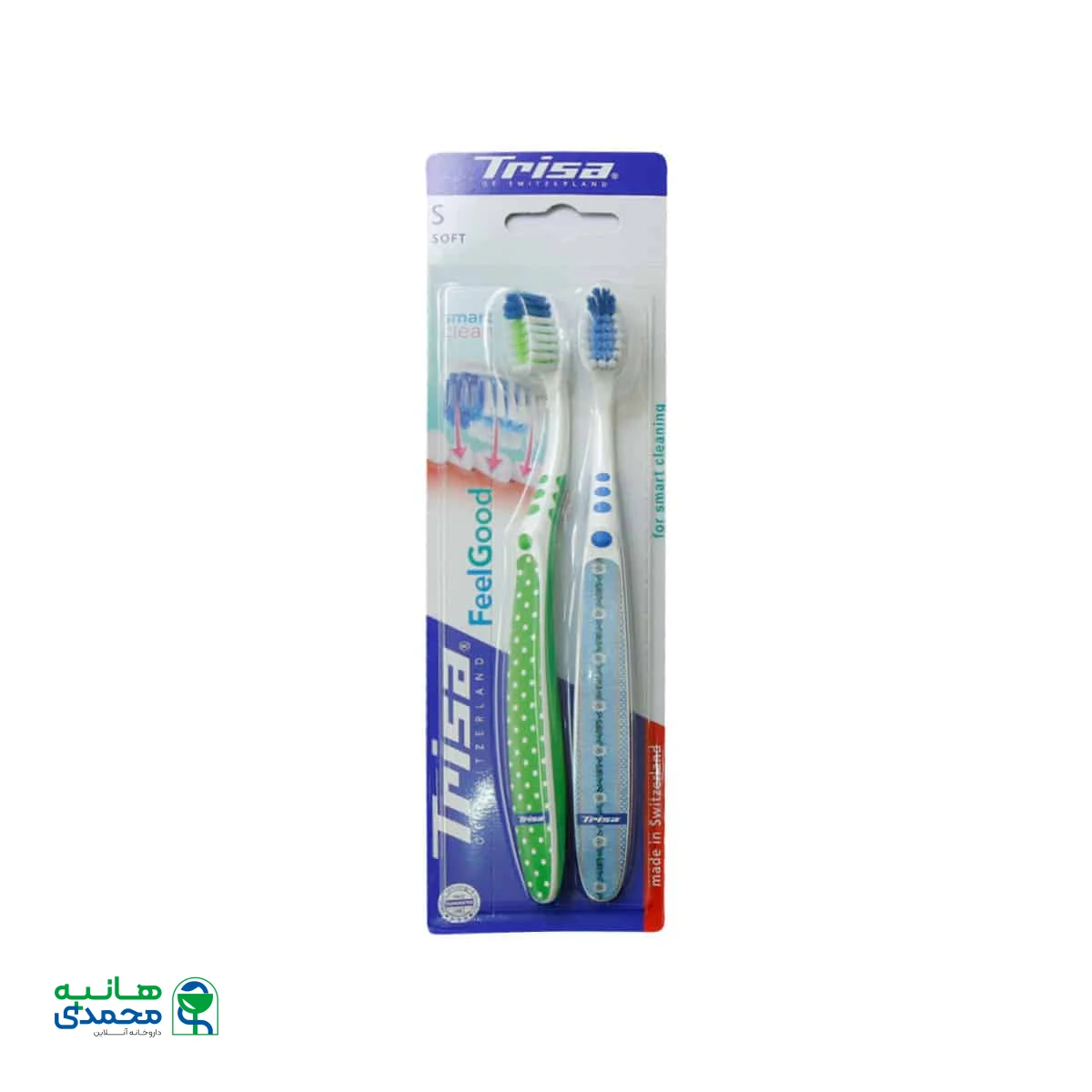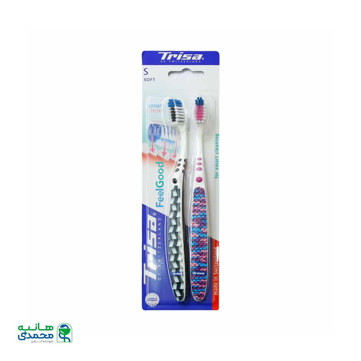 مسواک دوتایی فیل گود اسمارت کلین با فرچه نرم تریزا ساخت کشور سوئیس بوده که با طرح و رنگ‌های متنوع عرضه می‌شود. این مسواک دارای برسی با الیاف تماما ته گرد جهت محافظت از لثه‌ها و مینای دندان است. مسواک feel good به علت داشتن الیاف سفید رنگ با ارتفاع بلند خود سطوح خارجی دندان‌ها و فضای بین دندانی را کاملا پوشش می‌دهد. الیاف میانی و کوتاه‌تر مسواک نیز بالاترین میزان پاکسازی در سطح افقی دندان‌ها را فراهم می‌سازند. گفتنی است این مسواک مجهز به دسته ارگونومیک جهت کنترل دست در زمان مسواک زدن نیز هست. همچنین گردن انعطاف پذیر مسواک دوتایی فیل گود با فرچه نرم تریزا فشار بی از حد در زمان مسواک زدن را جذب می‌کند.
