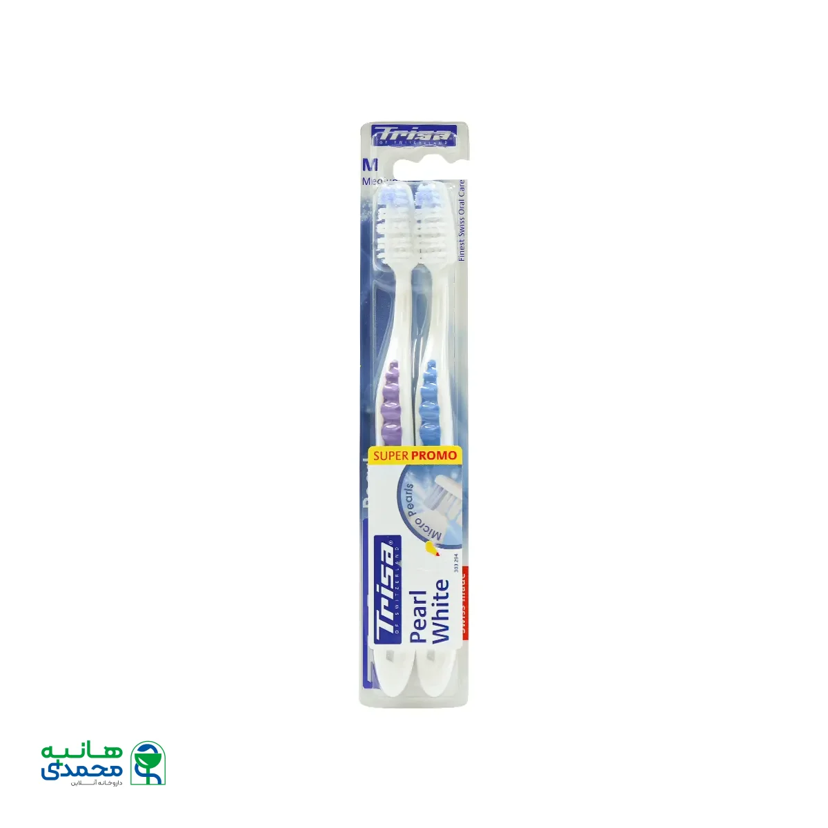 مسواک دوتایی پرل وایت با برس متوسط تریزاTrisa Pearl White Medium Thootbrush