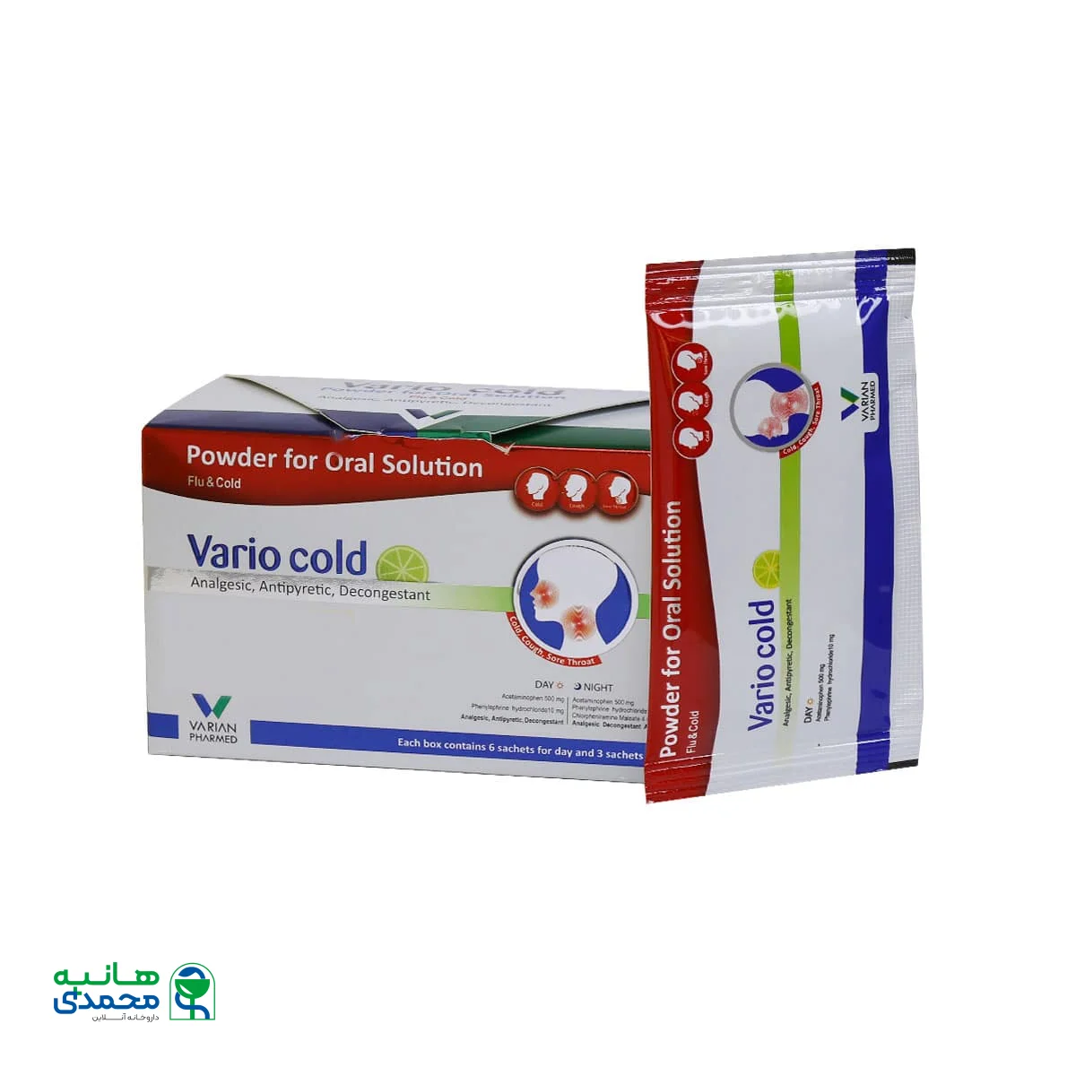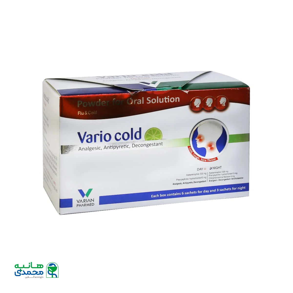ساشه واریو کلد واریان فارمد دارویی برای بهیود سرماخوردگی با علائم درد، تب و گرفتگی بینی است. این دارو حاوی 9 ساشه که 6 ساشه برای مصرف روز و 3 ساشه برای مصرف شبانه است.