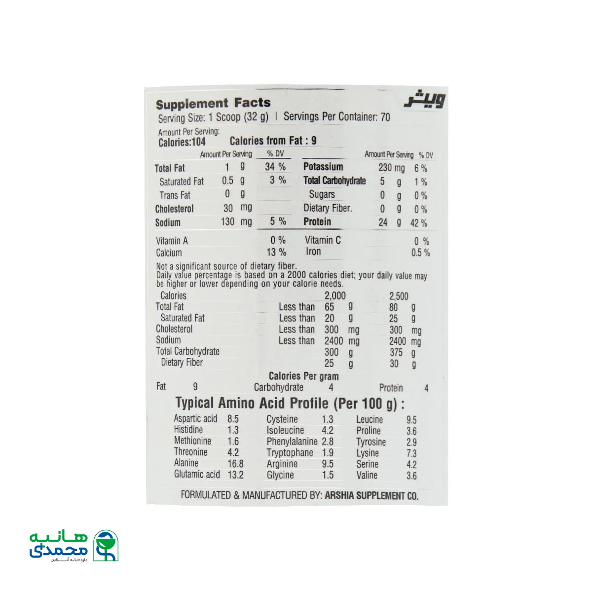 • دارای پروتئین وی کنسترانته و هیدرولیز شده