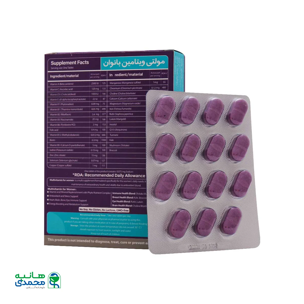زنان به واسطه عادت ماهانه به انواع ویتامین‌ها و مواد معدنی نیاز دارند. بعضی از مکمل‌ها برای سلامت جسمانی زنان در دوران قاعدگی و بارداری کاملا مهم و ضروری است و نیازهای بدن آنها را تامین می‌کند. نداشتن رژیم غذایی سالم، آسیب‌های شدیدی به بدن وارد خواهد کرد که از طریق خرید مولتی ویتامین زنان می‌توان به جبران کمبود آنها کمک نمود. قرص مولتی ویتامین بانوان ویتاگیت به تامین نیاز روزانه بدن خانم‌ها به ویتامین‌ها و املاح کمک کرده و بهبود سطح انرژی، کاهش خستگی، تقویت سیستم ایمنی بدن، سلامت سیستم عصبی و سلامت قلب و عروق را به دنبال دارد. مولتی ویتامین بانوان ویتاگیت فاقد سویا، گلوتن، لاکتوز و محصولات دستکاری شده ژنتیکی است.