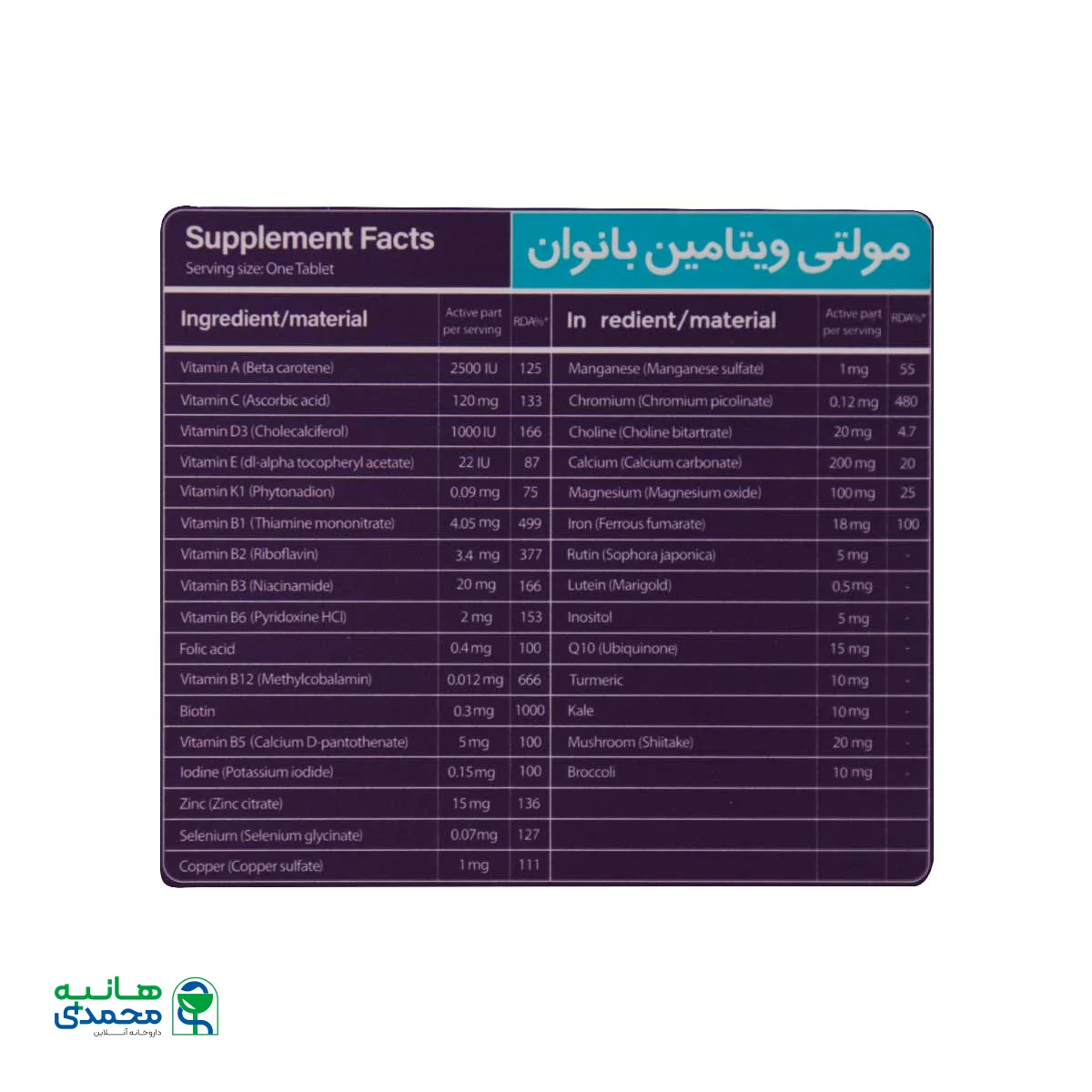 ویژگی های قرص مولتی ویتامین بانوان ویتاگیت