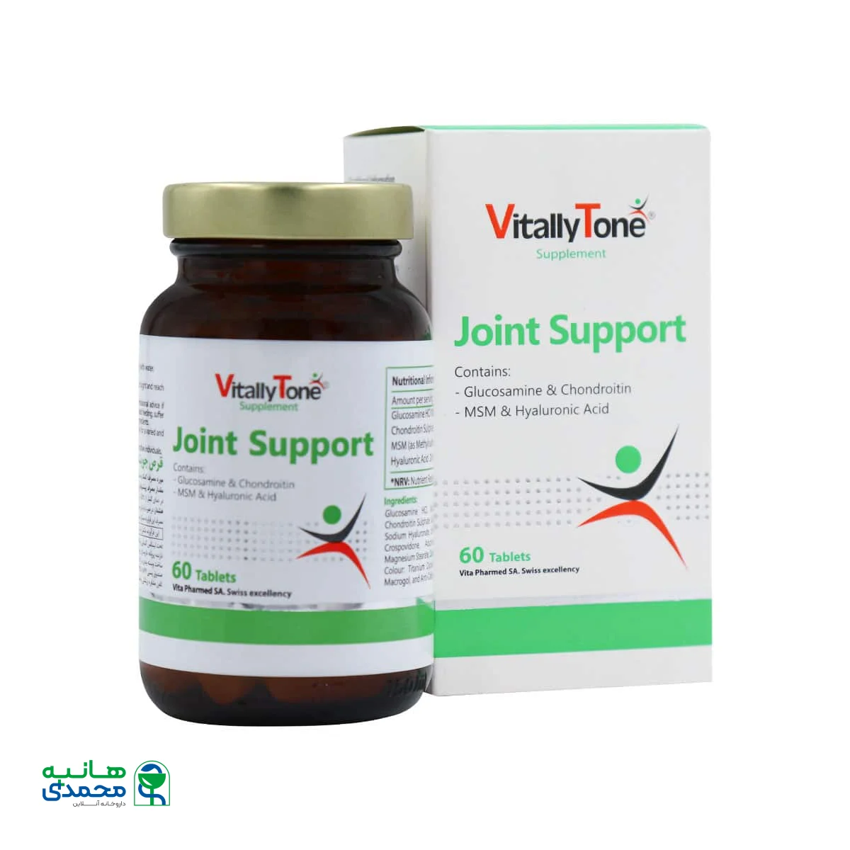 قرص جوینت ساپورت ویتالی تون حاوی گلوکوزآمین، کنروتئین به همراه هیالورونیک اسید بوده و جهت بهبود درد، التهاب و تسهیل حرکت مفاصل مصرف می‌شود.