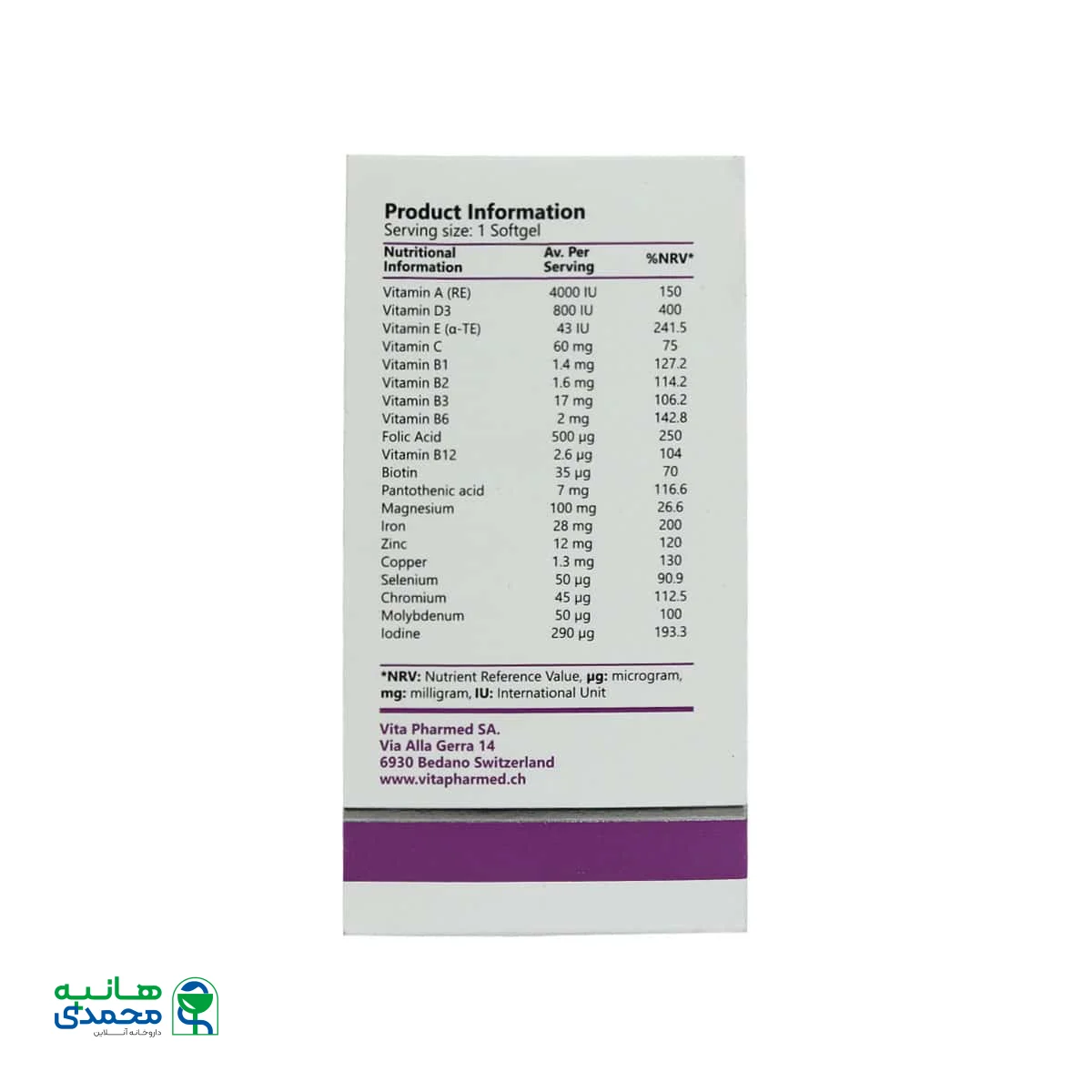 g = گرم  /  mg = میلی گرم  /  µg یا mcg = میکروگرم  /  IU = واحد بین المللی