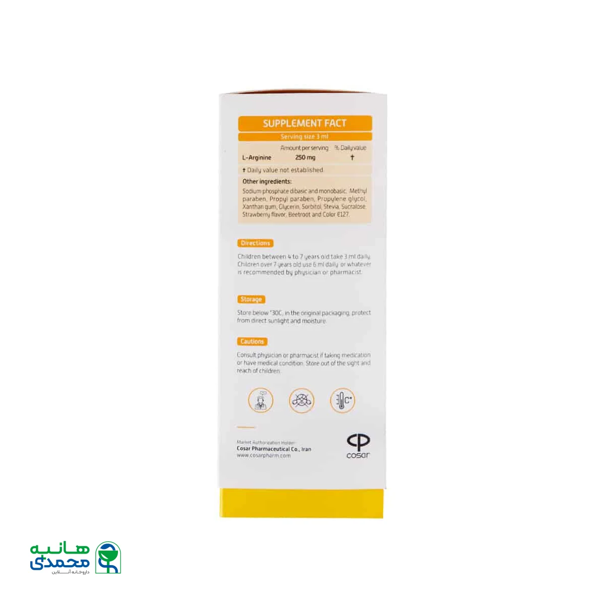 • حاوی 250 میلی گرم ال آرژنین در هر 3 میلی لیتر