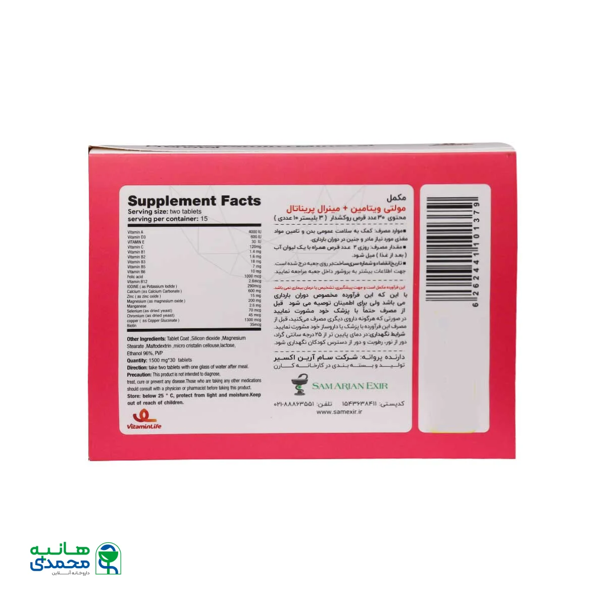 ویژگی های قرص مولتی ویتامین مینرال پریناتال ویتامین لایف
