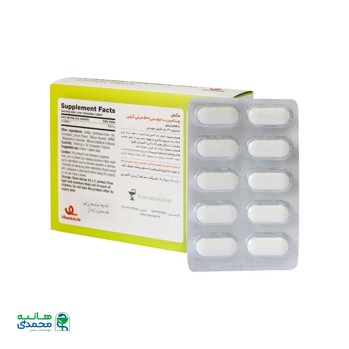 قرص جویدنی ویتامین C 500 میلی گرم ویتامین لایف 30 عددVitamin Life Vitamin C 500 mg 30 Chewable Tablets