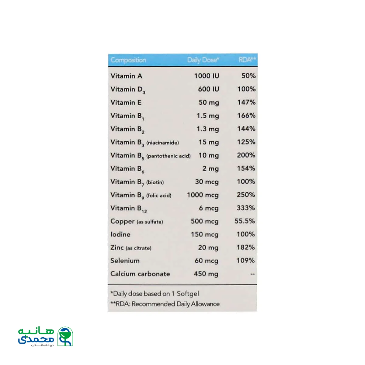 جدول ترکیبات سافت ژل مولتی سمی ویتامور