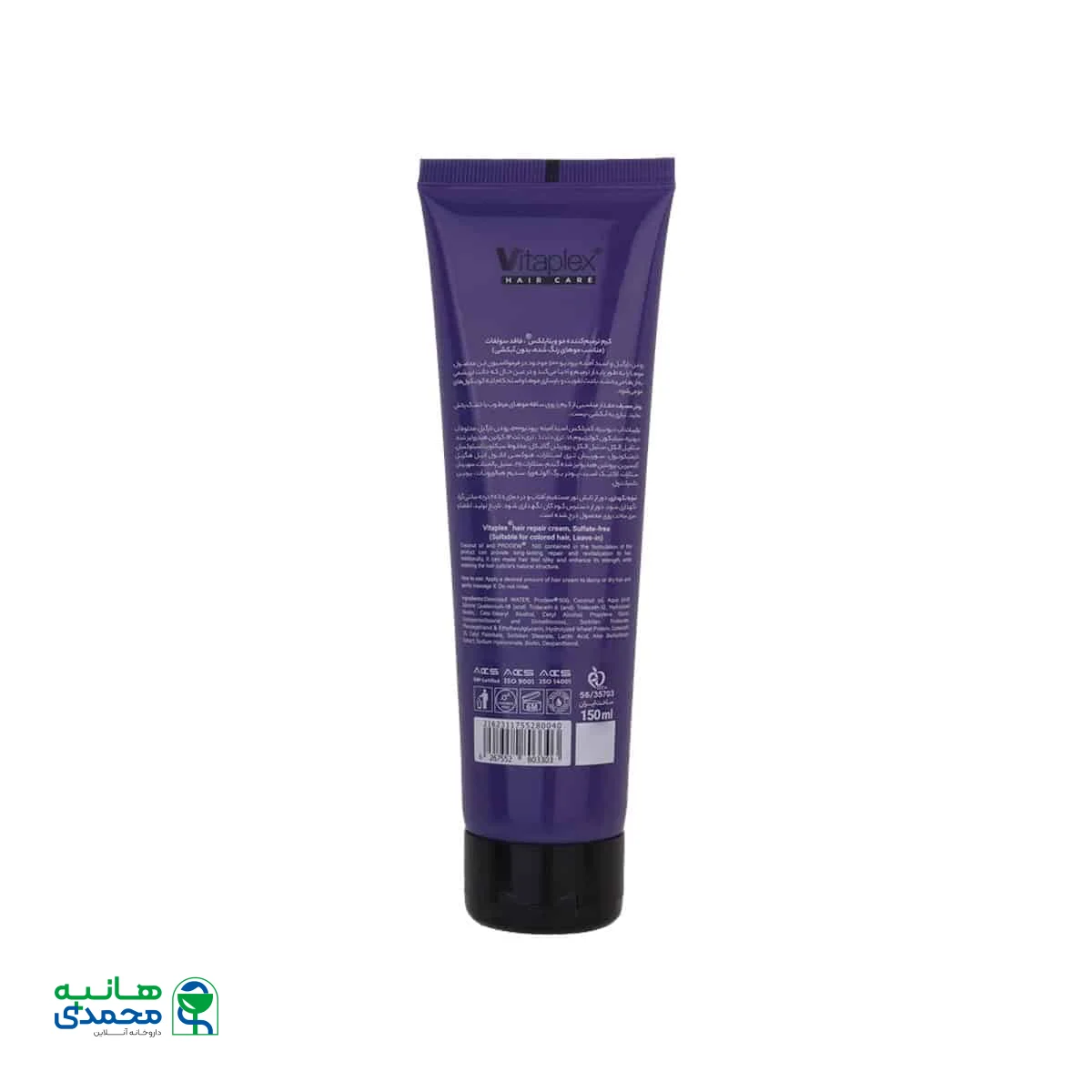 • کرم مو مناسب موهای رنگ شده ویتاپلکس فاقد پارابن، سولفات و نمک است.