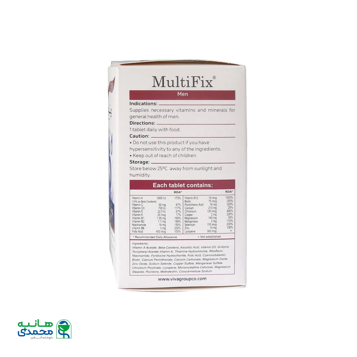 قرص روکشدار مولتی فیکس آقایان ویتاویوا مکملی منحصر به فرد که برای تامین ویتامین‌ها و مواد معدنی مورد نیاز آقایان فرموله شده است. همچنین این محصول دارای خاصیت آنتی اکسیدانی بوده که از بدن در برابر آسیب‌های سلولی، پیری زودرس و ابتلا به سرطان پروستات محافظت می‌کند. مصرف روزانه این قرص سبب می‌شود تا آقایان بدنی سالم داشته باشند. توجه داشته باشید که بهترین مولتی ویتامین مخصوص آقایان باید دربرگیرنده همه ویتامین ها و مواد مغذی مورد نیاز بدن آقایان باشد.