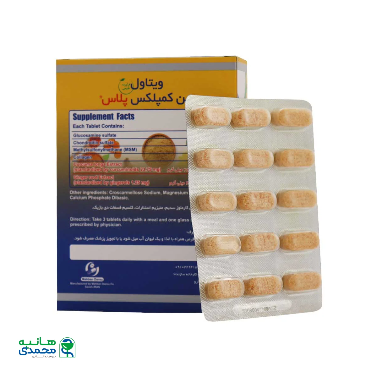 قرص بن کمپلکس پلاس ویتاول با داشتن ترکیبات موثر مانند گلوکزامین سولفات، کندروتین سولفات، متیل سولفونیل متان و … به بهبود عملکرد مفاصل و بهبود حرکت کمک می‌کند و همچنین باعث محافظت از غضروف‌ها و کاهش التهاب می‌شود. وجود کلاژن و دو عصاره گیاهی زردچوبه و زنجبیل به اثربخشی بیشتر این محصول کمک می‌کنند و باعث حمایت همه جانبه از مفصل و غضروف شده و در درمان آرتروز نیز مفید واقع می‌شوند.
