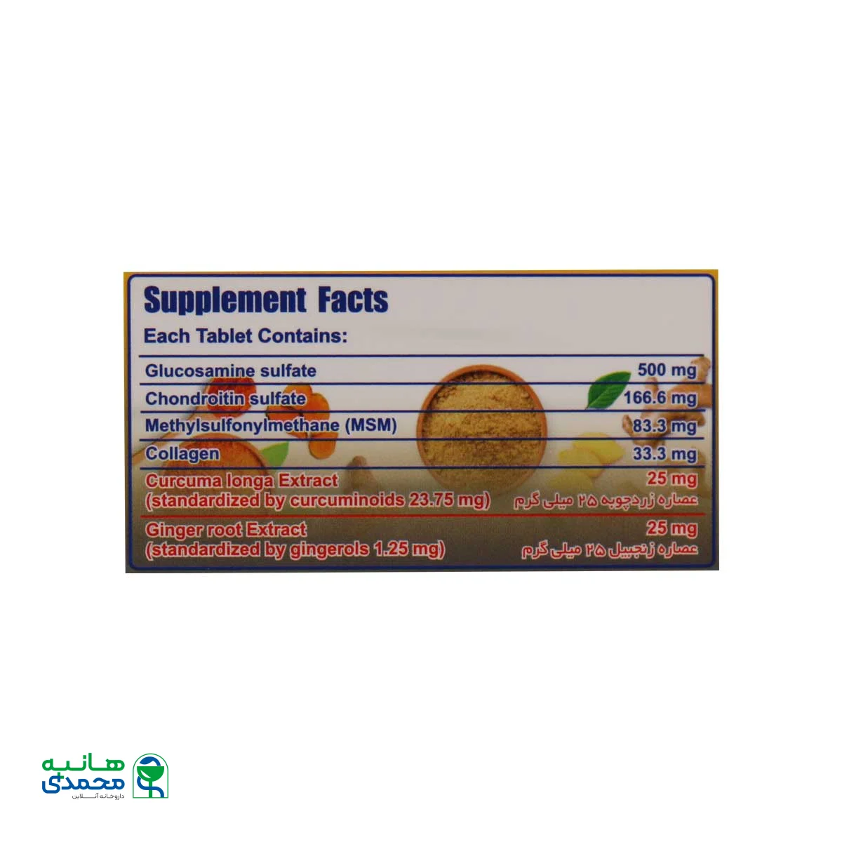 • کندروئیتین سولفات: از اجزای سازنده غضروف است و با دیگر ترکیبات موثر در مکمل استخوان و مفاصل به درمان آرتروز کمک می‌کند. این ترکیب به عنوان مکملی است که باعث سنتز اجزای مختلف غضروف می‌شود و از تجزیه آن جلوگیری می‌کند.