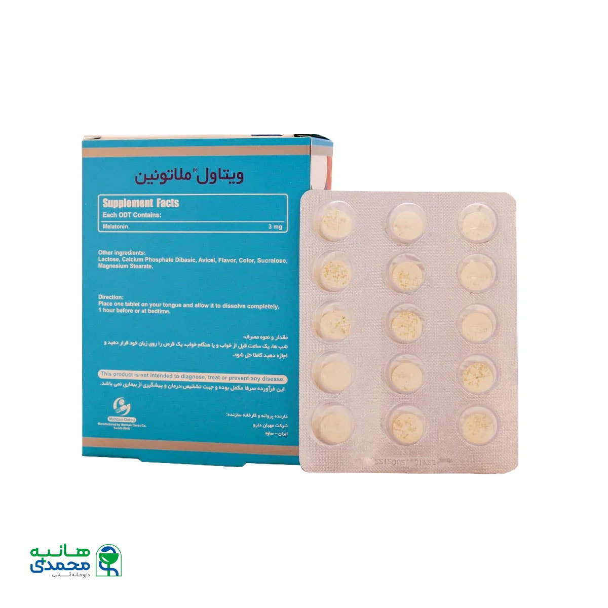 مکمل ملاتونین ویتاول توسط شرکت مهبان دارو تولید شده است و در هر بسته بندی شامل 30 عدد قرص بازشونده در دهان است. این ویژگی باعث جذب سریع‌تر و آسان‌تر و به دنبال آن اثرگذاری سریع‌تر می‌شود. همانطور که می‌دانید ملاتونین به صورت طبیعی در بدن تولید می‌شود و بدن را وارد فاز خواب می‌کند. علاوه بر آن این هورمون دارای خاصیت آنتی اکسیدانی نیز هست. اما در صورت کمبود این هورمون به دلایل مختلف، حتما نیاز است که توسط خرید مکمل ملاتونین و استفاده از آن، این کمبود را جبران نمایید. ملاتونین باعث کاهش زمان به خواب رفتن و ارتقا کیفیت خواب شده و به تنظیم ساعت شبانه روزی بدن کمک می‌نماید. به همین خاطر در سفرهای هوایی طولانی، تاثیر خوبی در بهبود جت لگ دارد. در مواردی نیز قرص ملاتونین 3 میلی گرم ویتاول می‌تواند در موارد کنترل اضطراب قبل از جراحی یا بی خوابی ناشی از آن مفید واقع شود.
