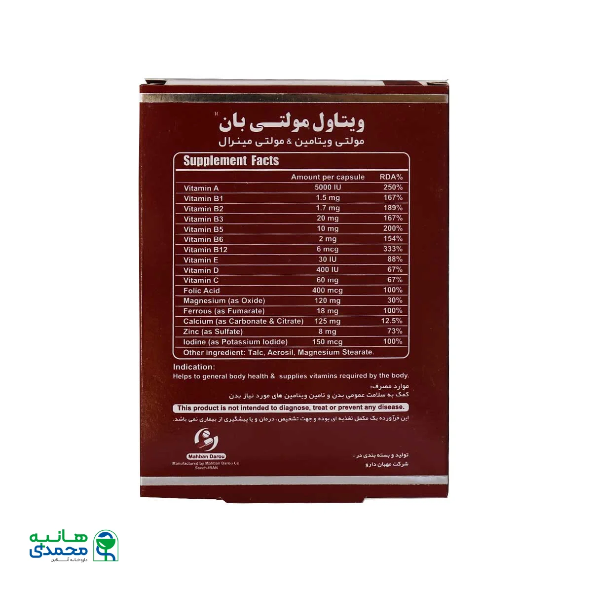 ویژگی های مولتی ویتامین مینرال مولتی بان ویتاول