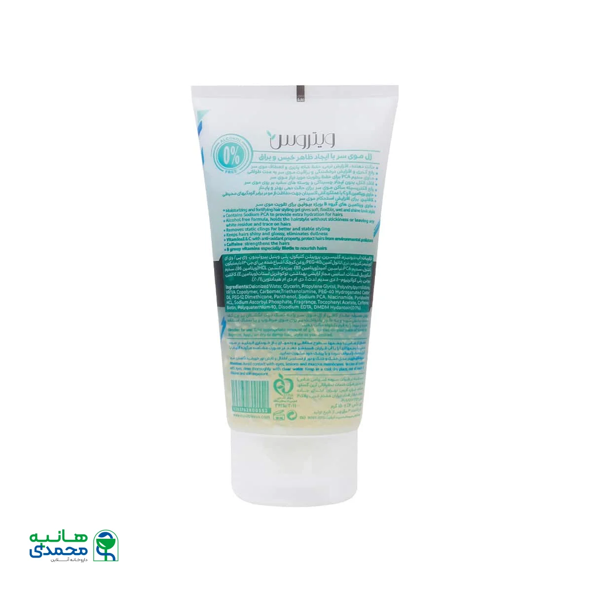 ژل موی سر با ایجاد ظاهر خیس و براق ویتروس یک ژل حالت دهنده طبیعی بوده که به افزایش نرمی، حفظ شانه پذیری و انعطاف موی سرتان کمک میکند. این محصول به رفع کدری و افزایش درخشندگی و براقیت موهایتان به مدت طولانی کمک میکند. این ژل موی سر ایرانی کاملا فاقد الکل بوده و بدون ایجاد هرگونه چسبندگی و پوستههای سفید بر روی مو سر قادر است تا موهایتان را به فرم طبیعی و دلخواه مورد نظرتان در آورد. همچنین حاوی کافئین بوده که به جهت افزایش استحکام موی سر بسیار کاربرد دارد. بیوتین به کار رفته در این ژل مو نیز برای تقویت موی سر بسیار موثر است. بنابراین پس از استفاده همانند ژلهای موی سر نامرغوب موجود در بازار به هیچ عنوان ریزش مو را تجربه نخواهید کرد.