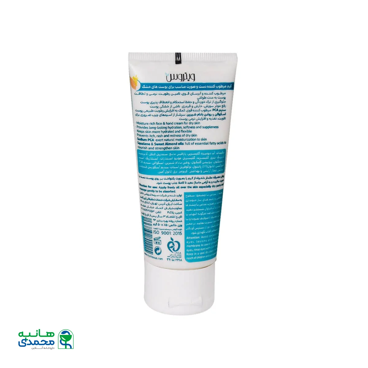 کرم مرطوب کننده تیوبی دست و صورت پوست خشک ویتروس 50 گرمVitreous Hand And Face Moisturing Cream For Dry Skin