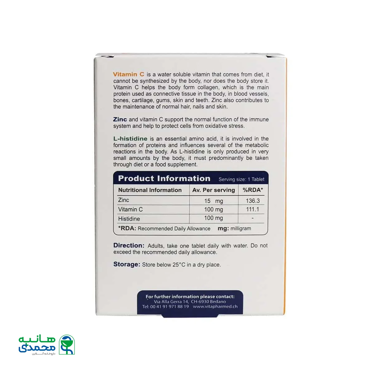 ویژگی های قرص زینک پلاس ویتامین C هیستیدین ویواتیون