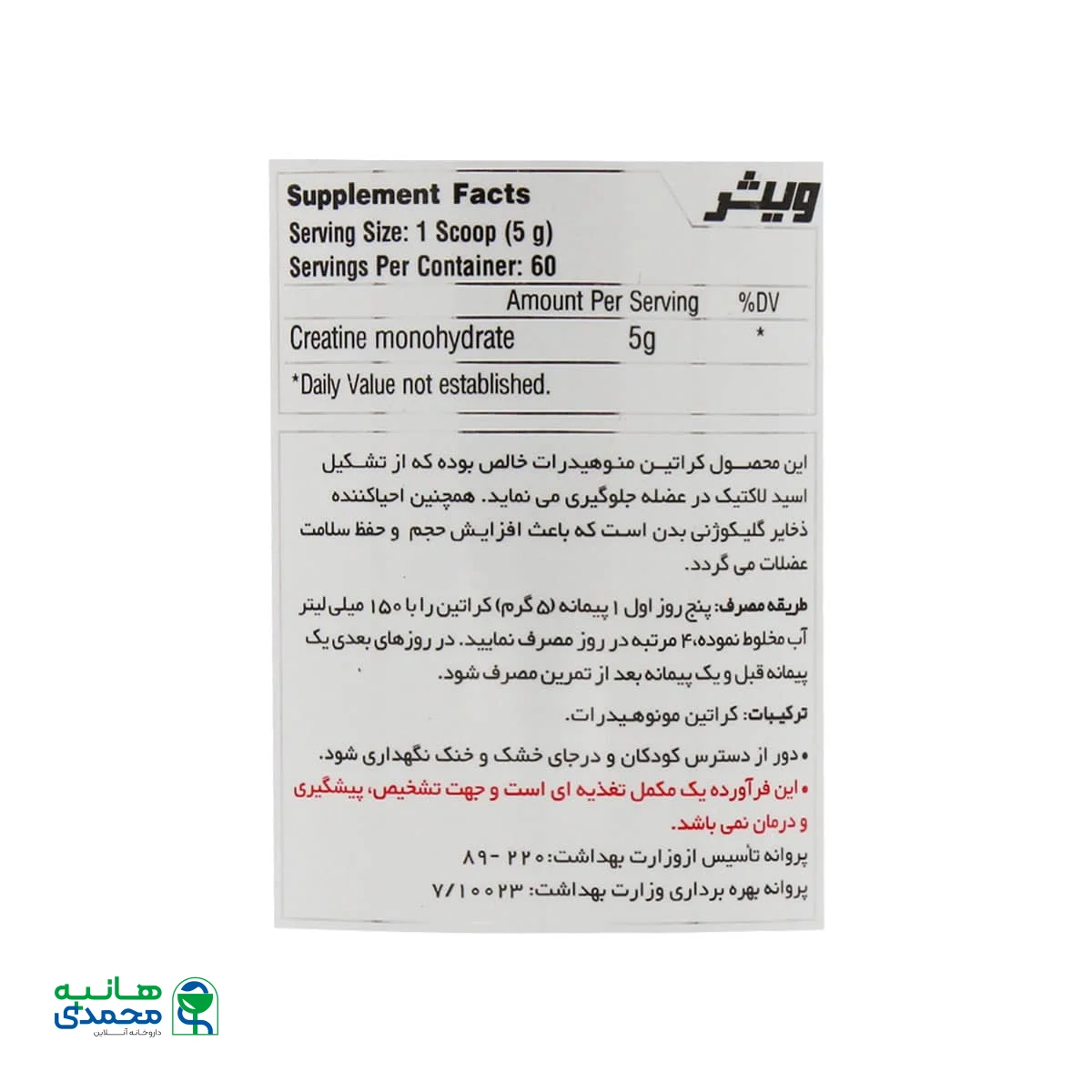 مشخصات کلیWisser Creatine Monohydrate Powder 300 g