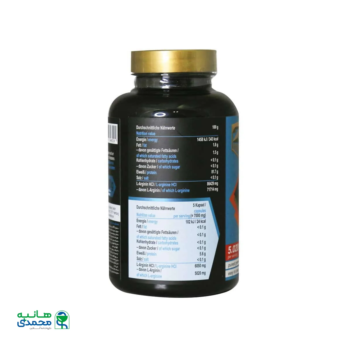 روزانه 5 عدد کپسول ال ارژنین قبل از تمرین همراه با یک لیوان آب مصرف شود.